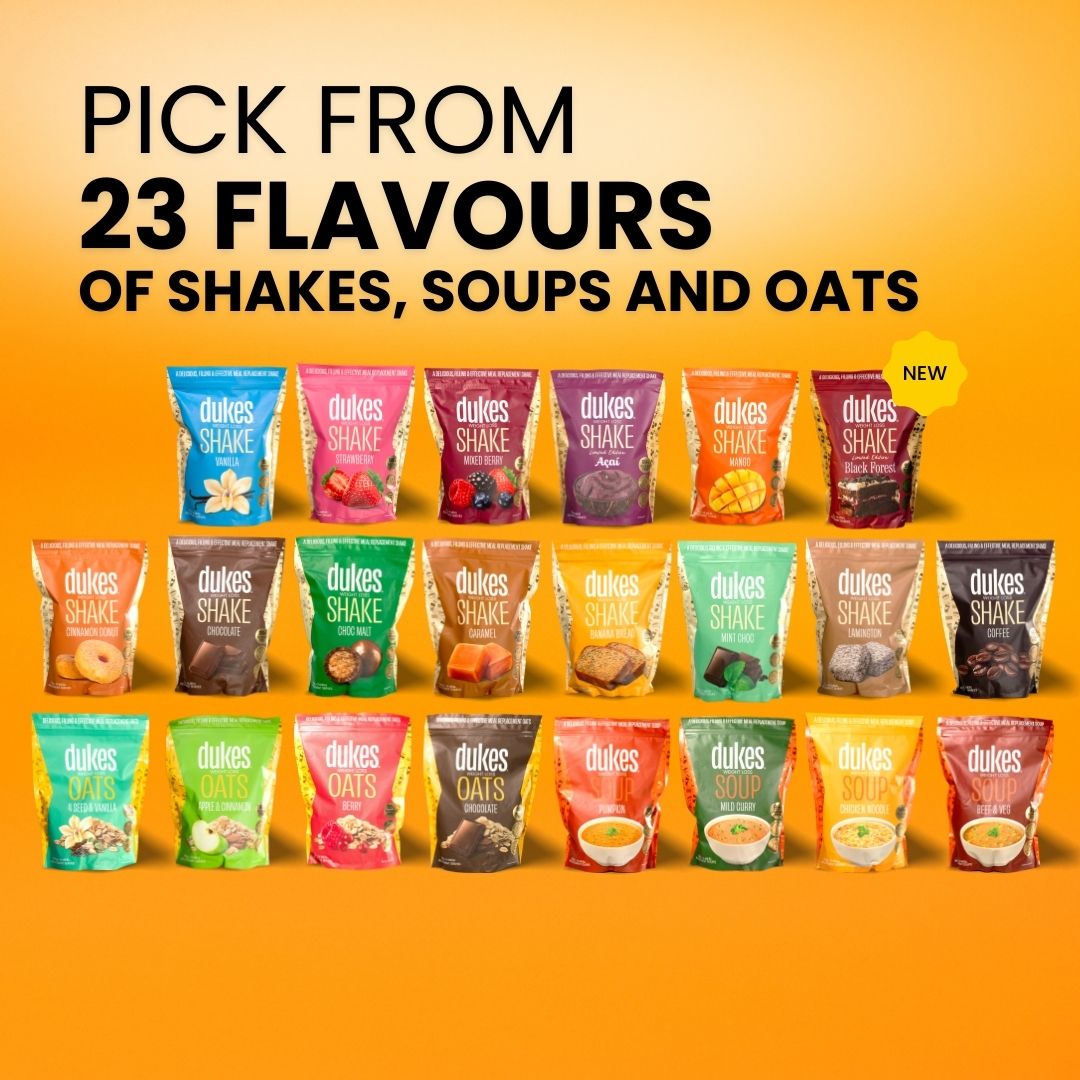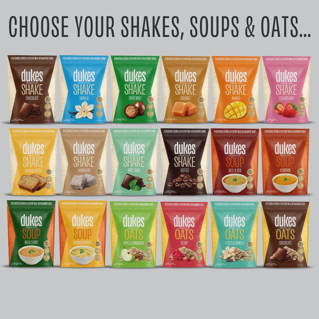 Your weight loss journey starts here with Dukes range of delicious meal replacement shakes, soups & oats that taste great, keep you full and actually work.